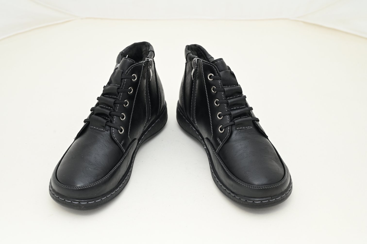 Ženske kratke poluduboke čizme na pertlu BEL4011 crna